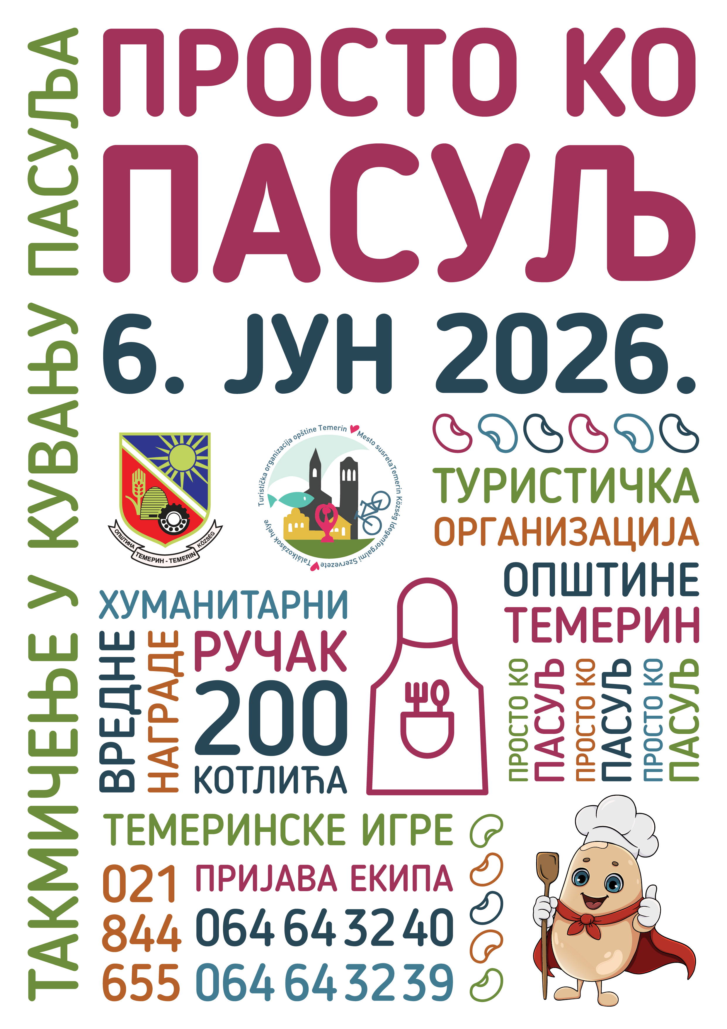 Љубитељи пасуља и добре забаве, спремни? И ове године на манифестацији „Просто ко пасуљ“ очекујемо око 200 екипа, котлића, казана, оранија… игара, такмичења, концерата, забаве, вредних награда, аниматора, биће свега!
